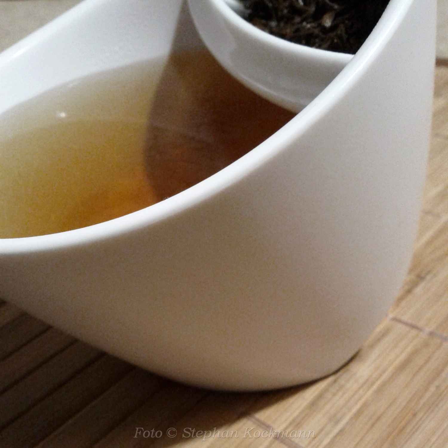 Obwohl die Tasse gut isoliert und ich befürchtete, dass ich mir gleich beim ersten Schluck die Zunge am heißen Tee verbrennen würde, ist das nicht passiert. Durch die weite Öffnung der Tasse kühlt der Tee an der Oberfläche relativ schnell auf Trinktemperatur herunter. Allerdings verflüchtigen sich so auch die Aromen des Tees etwas schneller, befürchte ich. Bei ca. 0,3 Litern Fassungsvermögen ist dieser Punkt aber wohl zu vernachlässigen.