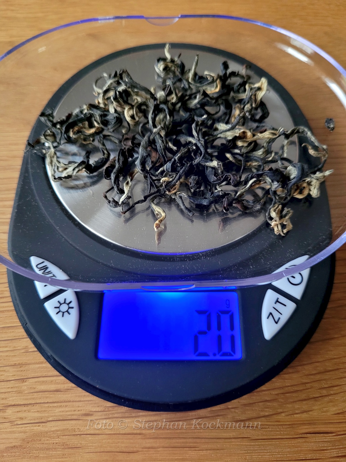 Bei meiner heutigen Verkostung meinte ich sowohl im trockenen Teeblatt als auch in der Tasse fruchtige Noten zu entdecken. Das kann aber auch daran liegen, dass ich den Tee in neutralem Porzellan zubereitet habe. In einer offenporigen Ton-Kanne wird sich das Geschmacksbild vermutlich ein wenig verändern. Das werde ich bei der nächsten Verkostung ausprobieren.